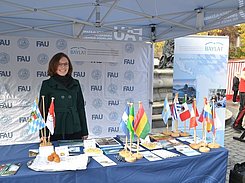 Unter dem Motto „International“ informierten FAU-WissenschaftlerInnen aus Chile, England, Indonesien, Kamerun und Mexiko über ihre Forschung an der FAU. Für BAYLAT waren Dr. Irma de Melo, Geschäftsführerin, Nadine Blamberger, Referentin, Marina Rupprecht, Koordinationsassistentin und Ricardo Hagn, wissenschaftliche Hilfskraft am Stand vertreten und klärten die BesucherInnen über die Aktivitäten von BAYLAT auf. „Für BAYLAT ist es wichtig zu zeigen, dass wir mit unserer international ausgerichteten Arbeit die Region in Lateinamerika bekannt machen“, so Dr. Irma de Melo. „Wir empfangen viele Wissenschaftlerinnen und Wissenschaftler sowie Regierungsvertreterinnen und Regierungsvertreter aus Lateinamerika in unserem Büro in der Apfelstraße. Auch unsere Veranstaltungen, die wir in Erlangen und Nürnberg organisieren bringen viele internationale Gäste in die Region.“