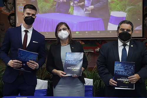 v.l.n.r. Herr Jonas Löffler, Ramona Rodríguez und Dr. Carlos Alvarado (Foto: UNAN-Managua)