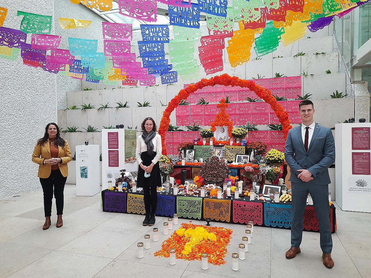 Dr. Irma de Melo-Reiners, Bettina Kettler und Jonas Löffler in der mexikanischen Botschaft in Berlin