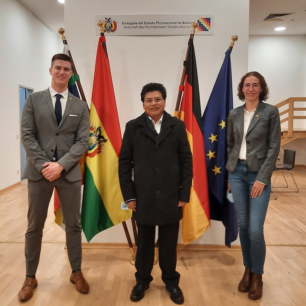Die BAYLAT-ReferentInnen Bettina Kettler und Jonas Löffler nahmen an diesem Tag zunächst einen Termin in der Botschaft Boliviens wahr. Dort besprachen Sie sich mit dem Botschaftsrat Alex Díaz Mamani über Anknüpfungspunkte zum Ausbau bayerisch-bolivianischer Wissenschaftskooperationen und über die Möglichkeiten, bolivianische WissenschaftlerInnen mittels eines neunen BAYLAT-Förderprogramms für einen Aufenthalt in Bayern zu gewinnen.