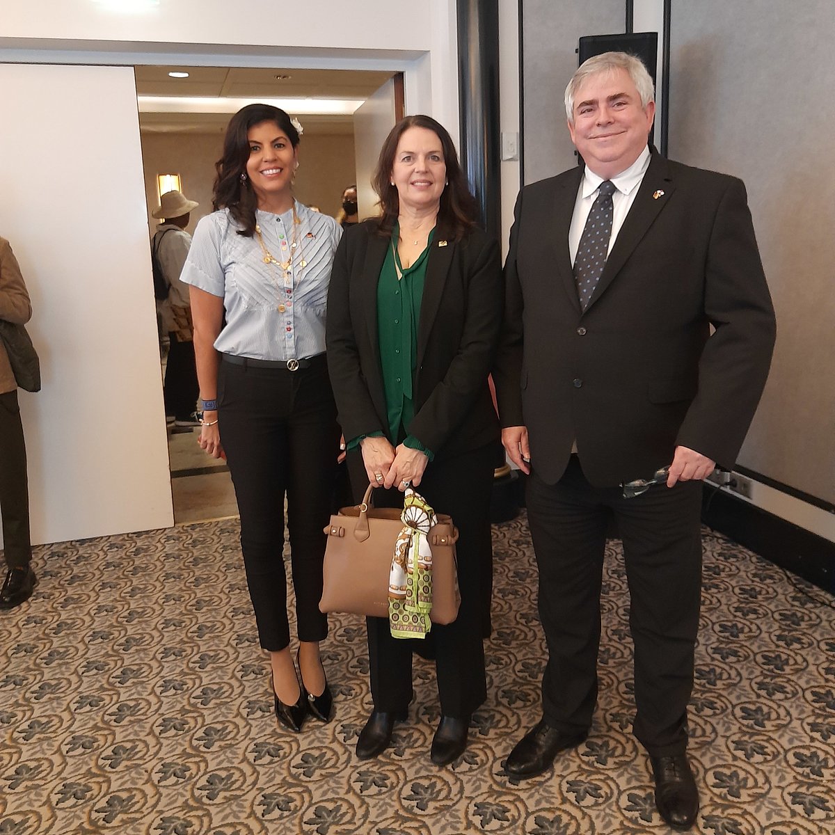 links: S.E. Enrique Alberto Thayer Hausz (r.) und Tania V. Troyano Rogriguez (l.) mit Dr. Irma de Melo-Reiners