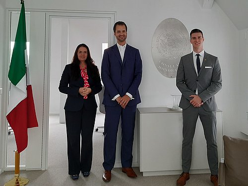 Dr. Raymond Wittmann empfing anlässlich seines Amtsantritts als neuer Honorarkonsul von Mexiko in Münchendie Geschäftsführerin des Bayerisches Hochschulzentrum für Lateinamerika (BAYLAT), Dr. Irma de Melo-Reiners und Jonas Löffler B.A.,BAYLAT-Referent und Marketingbeauftragter. Das Treffen fand am 28. September 2020 in den neuen Büros des Honorarkonsulats auf dem Gelände von BMW in der Moosacher Straße in München statt. Dr. Wittmann wurde das Exequatur als Honorarkonsul der Vereinigten Mexikanischen Staaten im Mai 2020 erteilt.