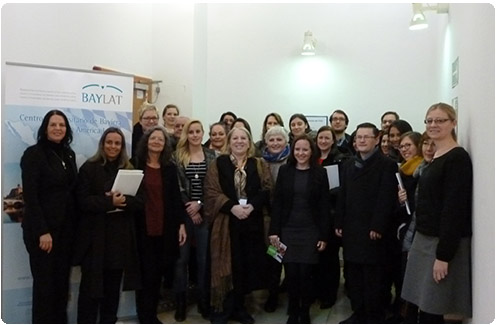 Das Bayerische Hochschulzentrum für Lateinamerika (BAYLAT) empfing am 21. Januar 2015 eine Gruppe von VertreterInnen von Hochschulen aus dem internationalen Umfeld im Rahmen der 7. ERASMUS Staff Week. Diese wurde vom 19. bis 23. Januar 2015 unter dem Motto „Co-operation between European and Latin-American Universities“ vom International Office der FAU Erlangen-Nürnberg organisiert. Zuvor stellte Frau Prof. Dr. Andrea Pagni, Vorsitzende des BAYLAT-Direktoriums und Lehrstuhlinhaberin des Fachbereichs Lateinamerikanistik, insbesondere Literatur- und Kulturwissenschaft der FAU Erlangen-Nürnberg, den internationalen Masterstudiengang „The Americas/Las Américas“ vor. Frau Dipl.-Pol. Luise Freitag, Referentin und Förderbeauftragte, hielt anschließend eine Präsentation über BAYLAT mit seinen Aktivitäten und Programmen. Am 23. Januar 2015 nahmen verschiedene VertreterInnen lateinamerikanischer Hochschulen das Angebot zu individuellen Besprechungsterminen bei BAYLAT wahr. Frau Dr. Irma de Melo beriet die Gäste dabei über die Möglichkeiten der Hochschulzusammenarbeit zwischen Bayern und Lateinamerika.