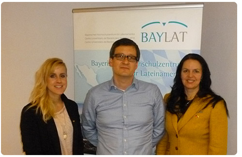 Frau Dr. Irma de Melo, BAYLAT-Geschäftsführerin und Frau Aline Looschen M.A., BAYLAT-Referentin und Marketingbeauftragte, empfingen den Wissenschaftler und stellten die Aktivitäten und Programme von BAYLAT, insbesondere das Programm der BAYLAT-Anschubfinanzierung, vor.