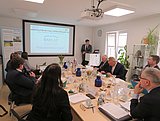 In den Räumlichkeiten von BAYLAT begann das Treffen mit allen TeilnehmerInnen. BAYLAT wurde vertreten durch Dr. Irma de Melo-Reiners, Geschäftsführerin von BAYLAT, und Jonas Löffler, BAYLAT-Referent und Marketingbeauftragter. Die wissenschaftlichen Vertreter waren Prof. Dr. Joachim Steffen, Lehrstuhl für Angewandte Sprachwissenschaft (Romanistik) an der Universität Augsburg, Prof. Dr. Enrique Zuazua, Lehrstuhl für Lehrstuhl für Dynamics, Control and Numerics (Alexander von Humboldt-Professur) an der Friedrich-Alexander-Universität Erlangen-Nürnberg (FAU), Prof. Dr.-Ing. habil. Aldo R. Boccaccini, Mitglied des BAYLAT-Beirats und Inhaber des Lehrstuhls für Biomaterialien, Friedrich-Alexander-Universität Erlangen-Nürnberg und Prof. Dr. Karl-Dieter Grüske, ehemaliger Präsident der FAU und Ehrenmitglied des BAYLAT-Beirats. Als Vertreter der regionalen Wirtschaft waren auch Dr. Manuel Hertel, stellvertretender Leiter des Geschäftsbereichs International, Asien, Messen der IHK Nürnberg und Mittelfranken, und Marina Meckler, Auszubildende bei der IHK Nürnberg und Mittelfranken, anwesend.