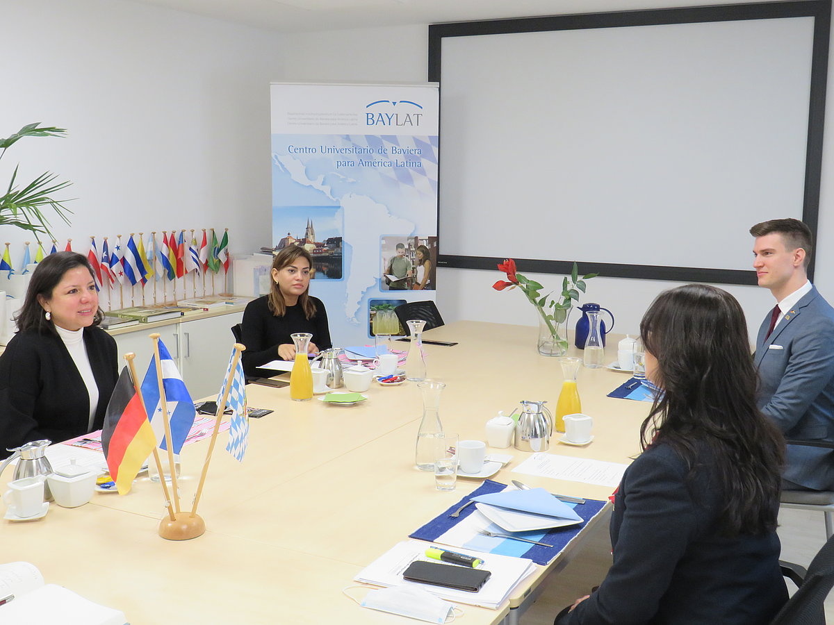 Am Mittwoch, den 11. November 2020 beehrte die Botschafterin der Republik Honduras, I.E. Christa Castro Varela in Begleitung ihrer Ersten Botschaftssekretärin Carolina Morales Cruz das Bayerische Hochschulzentrum für Lateinamerika (BAYLAT) mit einem Besuch. BAYLAT-Geschäftsführerin Dr. Irma de Melo-Reiners und Jonas Löffler, BAYLAT-Referent und Marketingbeauftragter, empfingen die aus Berlin angereisten Landesvertreterinnen zu einem Arbeitstreffen in den Erlanger BAYLAT-Büros.