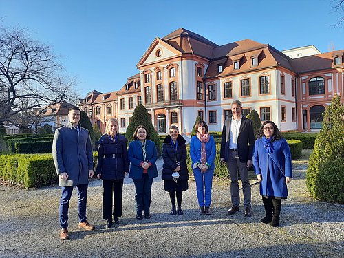 v.l.n.r.: Jonas Löffler, Prof. Dr. Miriam Lay Brander (ZILAS / KU), S.E. Cecilia Villanueva, Miriam Chaves (Konsulat Argentinien in Frankfurt), Irune Arratibel (Botschaft Spanien in Berlin), Dekan Prof. Dr. Sebastian Kürschner (KU), Dr. Claudia Velázquez-Schobert (ZILAS / KU)