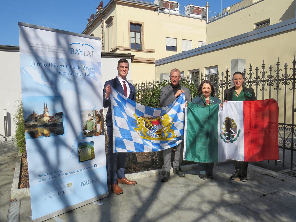 Das Arbeitstreffen in Erlangen galt der Erörterung verschiedener Themen im Zusammenhang mit der Intensivierung der wissenschaftlichen und akademischen Zusammenarbeit zwischen Mexiko und BAYLAT. Seitens BAYLAT waren Dr. Irma de Melo-Reiners, Geschäftsführerin, und Jonas Löffler, Referent und Marketingbeauftragter, anwesend. An dem Treffen mit der Generalkonsulin nahm auch Prof. Dr. DhC. Enrique Zuazua, Direktor des Lehrstuhls für Dynamik, Regelungstechnik und Numerik (Alexander-von-Humboldt-Lehrstuhl) an der Friedrich-Alexander-Universität Erlangen-Nürnberg (FAU), teil.