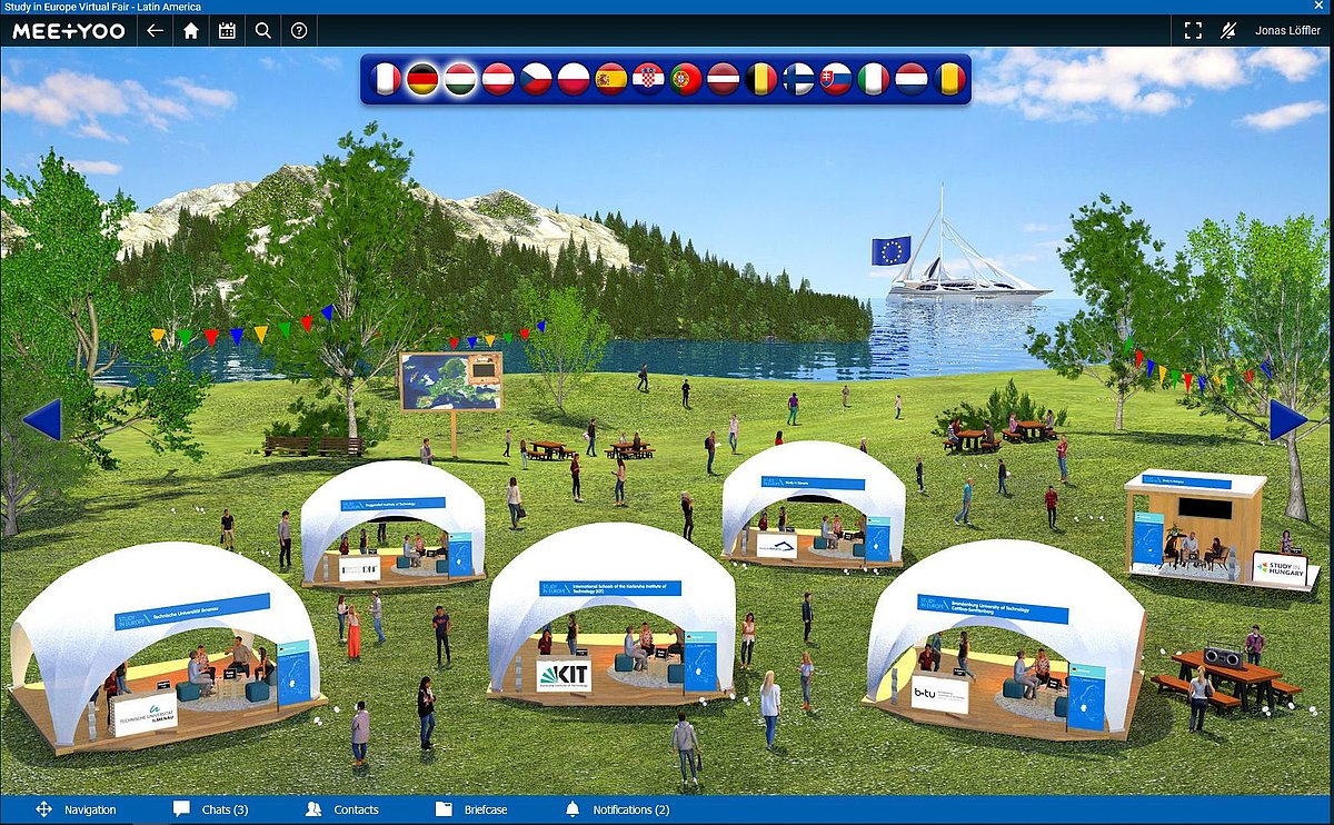 Viele Länder Europas waren mit diversen Hochschulständen auf der Online-Messe vertreten. Unter dem Motto „Study in Bavaria“ bot der bayerische Stand im Deutschland-Bereich der Messe Beratung und Informationen rund um das Studien- und Forschungsangebot im Freistaat an. Dabei wurden die von den Hochschulen des Freistaats bereitgestellten Materialien und Links genauso eingebunden wie die Informationskampagnen des Bayerischen Staatsministeriums für Wissenschaft und Kunst (StMWK) „Study in Bavaria“ und „Research in Bavaria“.