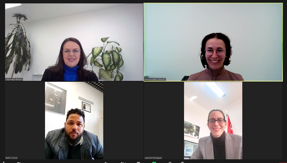 Dr. Irma de Melo-Reiners, Geschäftsführerin von BAYLAT, begrüßte alle Anwesenden. Gemeinsam mit Bettina Kettler, BAYLAT-Referentin und Förderbeauftragte, Zusammenarbeit und Ressourcenallokation, präsentierten sie alle Informationen zu den Finanzierungsprogrammen von BAYLAT. Für die kubanische Botschaft nahmen die Geschäftsträgerin a.i., Ivet López Rodríguez, und Professor Dr. Dacheri López, Erster Sekretär und Leiter der Konsularabteilung in Berlin, teil. Alle Anwesenden betonten das große Potenzial der wissenschaftlichen Zusammenarbeit zwischen den Hochschulen Kubas und Bayerns. Als Beispiel für eine solche Zusammenarbeit wurde unter anderem die Weiterentwicklung der Bavarian-Latin American Alliance for Applied Life Sciences diskutiert, die BAYLAT finanziell unterstützt.