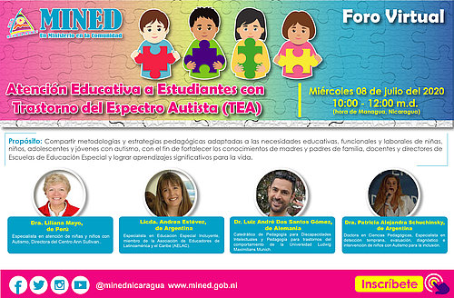 El Ministerio de Educación de Nicaragua está organizando una serie de conferencias virtuales que tendrán lugar hasta finales de 2020. En estos llamados "foros virtuales", expertos de Nicaragua y otros países de América Latina debaten temas de la pedagogía y la didáctica, así como de la formación de profesores. A petición de la Embajadora de Nicaragua en Alemania, S.E. Tatiana Daniela García Silva, BAYLAT promociona la participación de científicos de Baviera para dichas conferencias en línea.