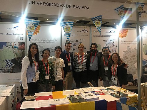 El stand de Baviera, que cuenta con una larga tradición en las ferias universitarias de ambos países, tuvo una gran afluencia de público tanto en Chile como en Colombia, lo que se debe principalmente a la amplia gama de cursos de inglés y programas de doctorado ofrecidos por las universidades bávaras.