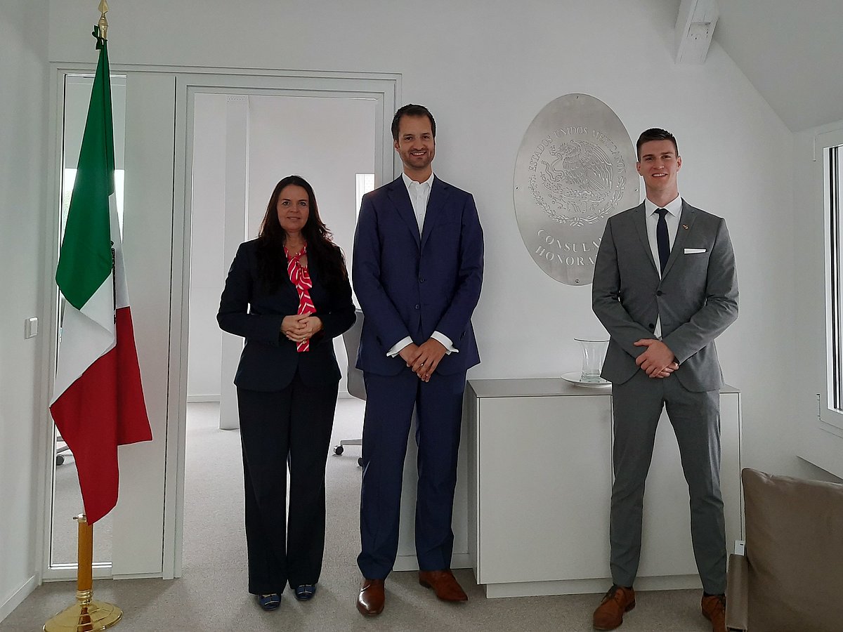 Con motivo de la toma de posición como nuevo Cónsul Honorario de México en Múnich, el Dr. Raymond Wittmann recibió a la Directora Ejecutiva del Centro Universitario de Baviera para América Latina (BAYLAT), la Dra. Irma de Melo-Reiners y a Jonas Löffler B.A., encargado de Cooperación Internacional y Márketing de BAYLAT. La reunión tuvo lugar el 28 de septiembre de 2020 en las nuevas oficinas del Consulado Honorario de México en Múnich, localizado en las instalaciones de BMW. Al Dr. Wittmann se le concedió el exequátur como Cónsul Honorario de los Estados Unidos Mexicanos en mayo de 2020.
