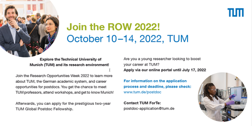 A chamada para a Semana de Oportunidades de Pesquisa (ROW) no TUM em outubro de 2022 já está aberta!