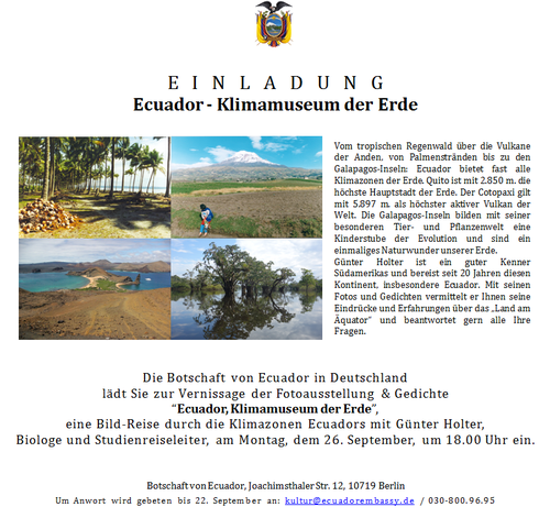 Veranstaltungsort: Botschaft von Ecuador in Deutschland, Joachimsthalerstr. 12, 10719 Berlin