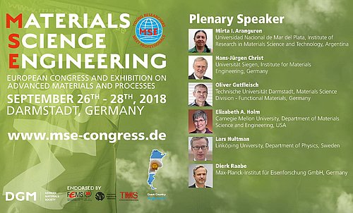 Vom 26. bis 28. September 2018 ist es wieder soweit: Europas Materialwissenschaftler und Werkstofftechniker treffen sich auf dem „Materials Science and Engineering - Congress“ (MSE) an der Technischen Universität Darmstadt.
